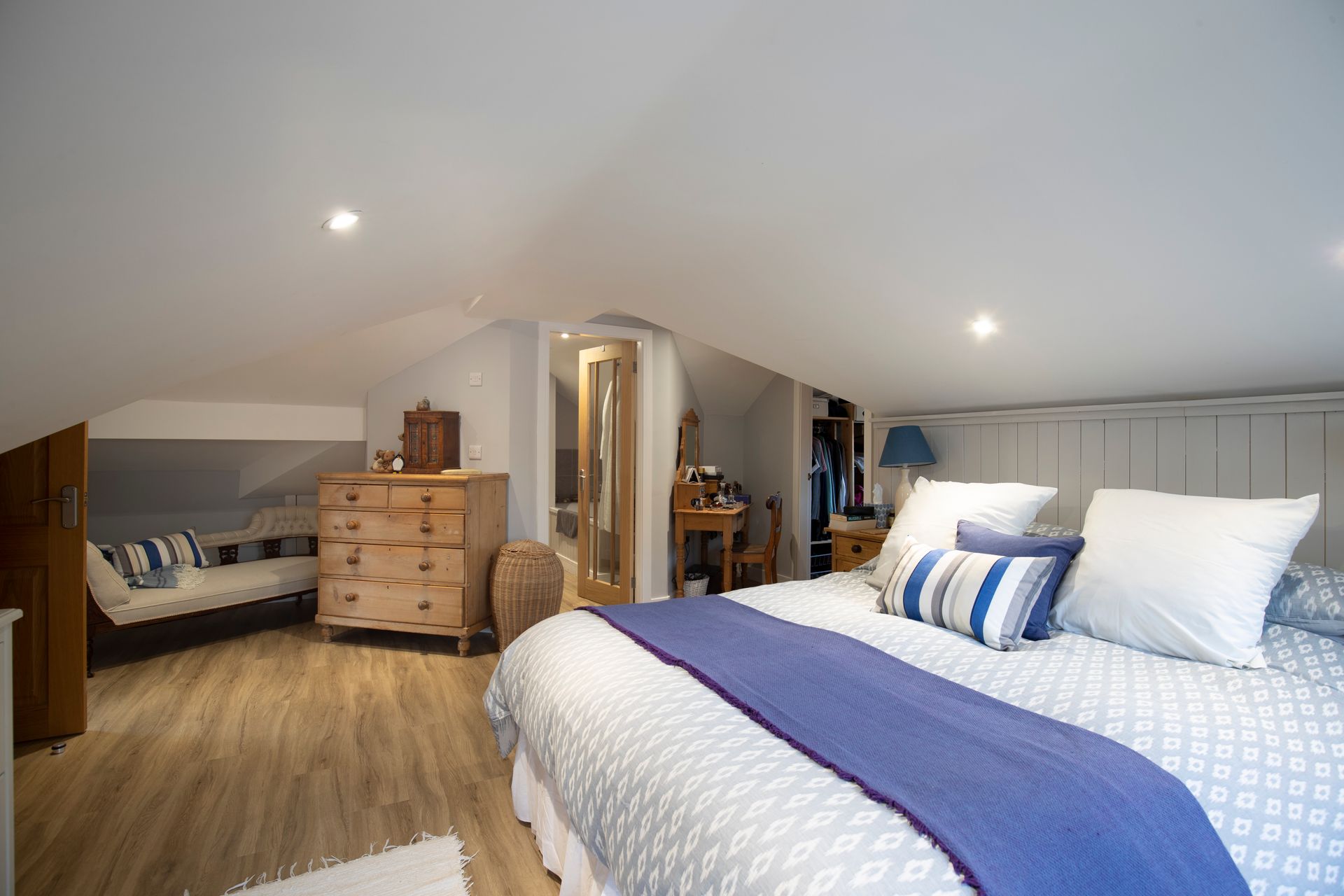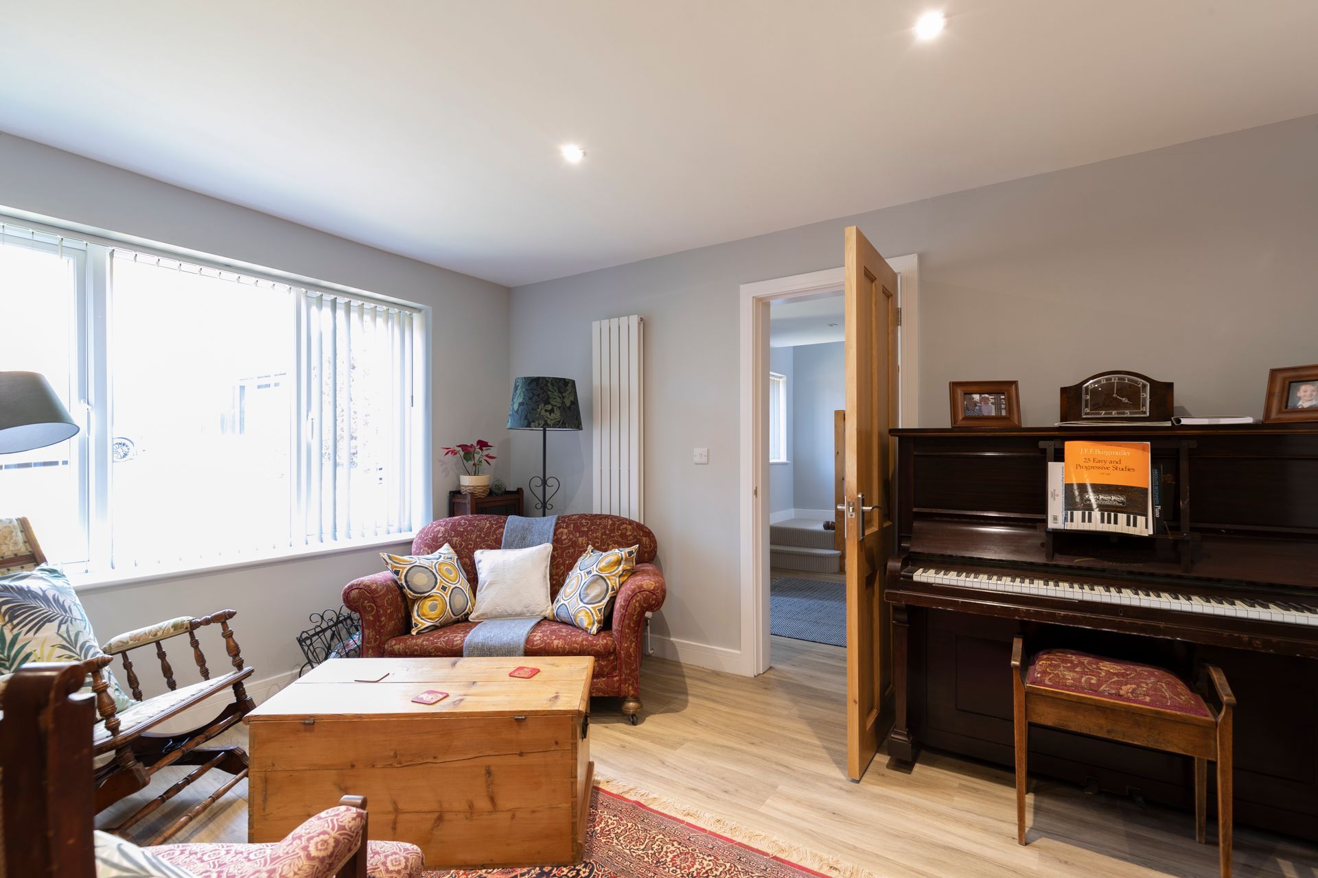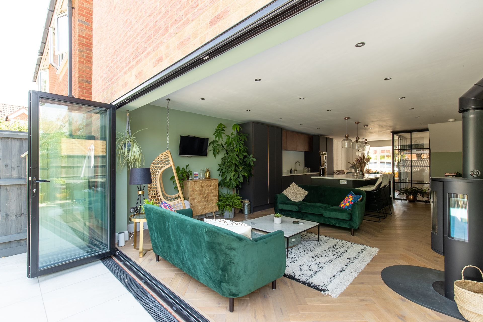 An impressive double storey rear extension, with a bespoke gable window lighting up the master bedroom. On the ground floor a spacious living area connects the sitting, dining, and kitchen, creating a homely and welcoming space for family and guests.
